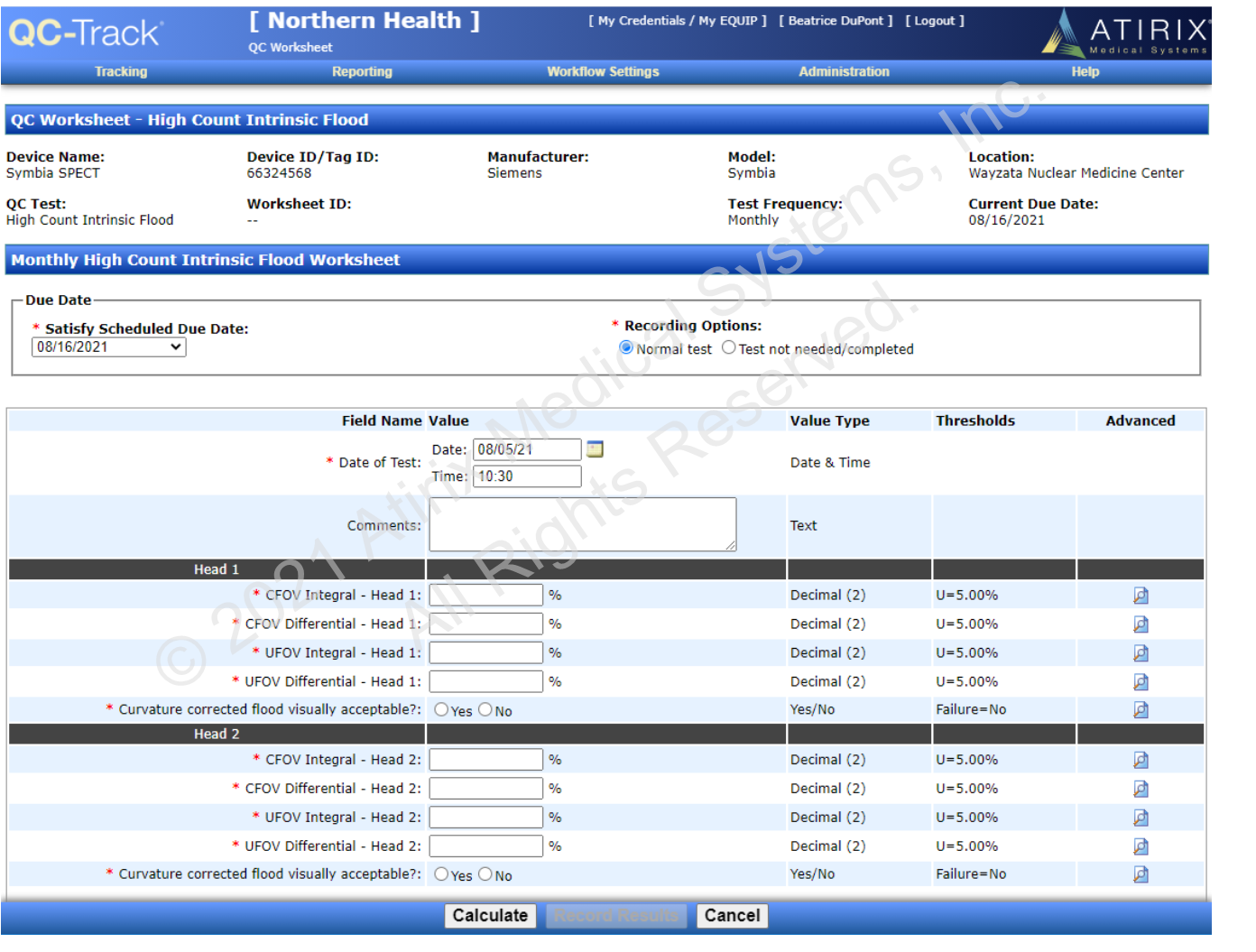 • The ability to manage all QC for the Nuclear Medicine department - SPECT and CT tests, PET checklists, dose calibrator tracking, eyewash check - from a single dashboard